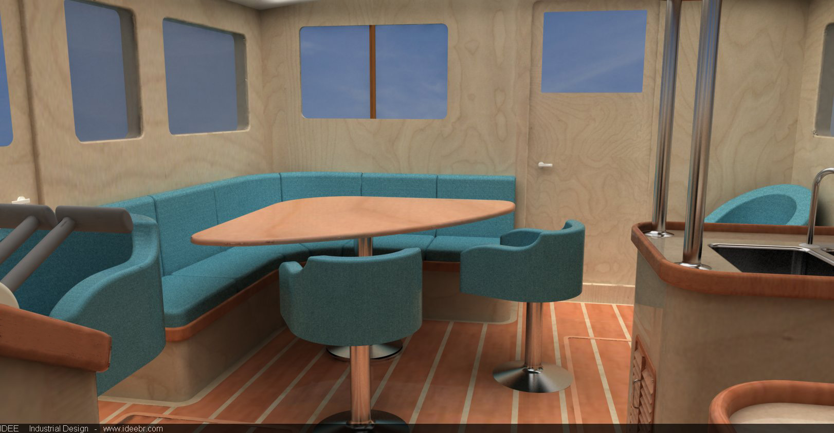The pilothouse saloon connects to the exterior by two doors. One of them, the main entrance, is on the saloon’s aft wall. The other is placed at the trunk starboard side wall and is handy in giving quick access to the outside in case the helmsman needs to check up a docking manoeuvre. This second exit is also a safety feature.