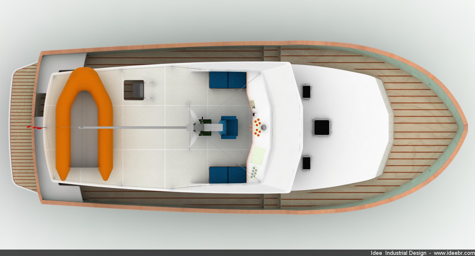 We gave special attention to the functionality when arranging the aft deck, extending the fly-bridge almost to the stern, providing shade to practically the whole length of such an important leisure area.