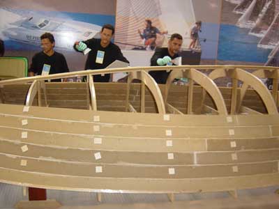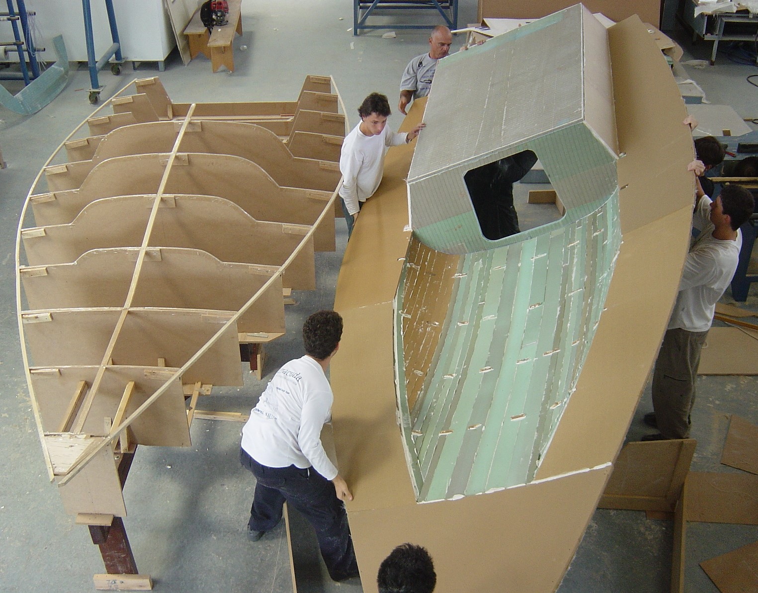 Our Microtonner is specified for a fiberglass sandwich construction. A building manual with simple and straight forward information explains step by step how to proceed with the construction. The superstructure is fabricated inside a female, cheap to build, mold and the whole process from start to finish takes only a few months of pleasant work.