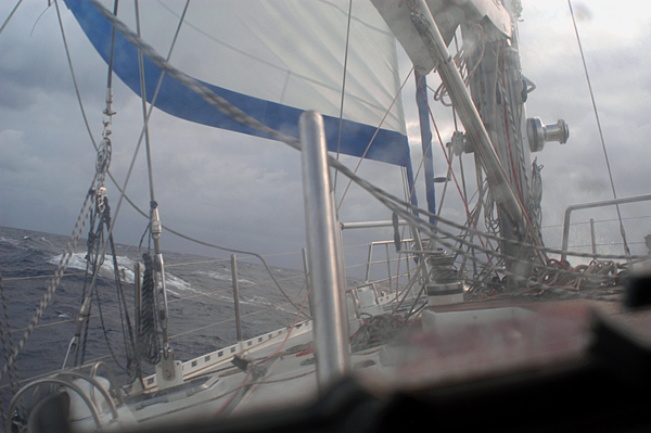 The mizzen sheet is anchored to a pad eye on the cockpit floor and the control is from the pilothouses coach roof. On ocean crossings, as is the case with all ketches, a mizzen staysail may be employed, enriching the pleasure of sailing considerably.