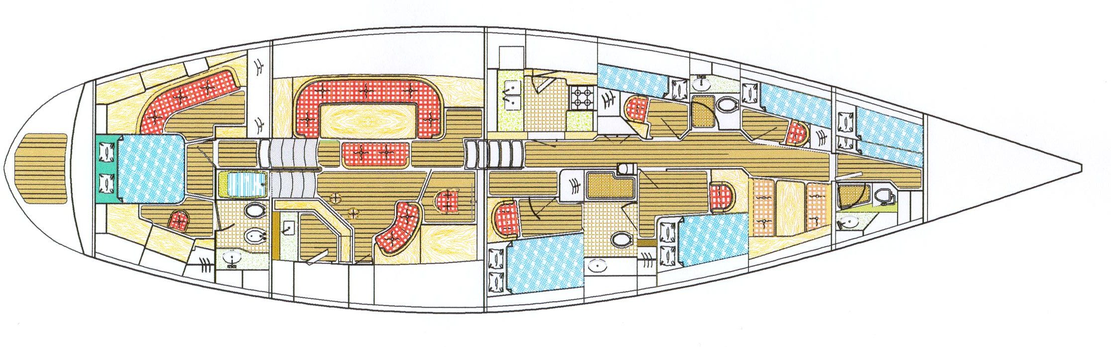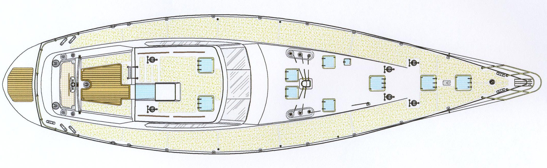 This magnificent cruising sailboat was designed having in mind ultimate luxury and comfort. Few other yachts of her size are in equal terms concerning space and style. We provided two options for her interior arrangement. One of them is five stars lay-out with a huge owner`s suite and a dining room at the raised saloon. The other one is intended for first class charter business with accommodation for a lot more guests but keeping the spaciousness throughout characteristic of the design.